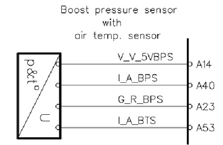 针脚:A14(正),A40(进气压力信号),A23(负),A53(进气温度信号)