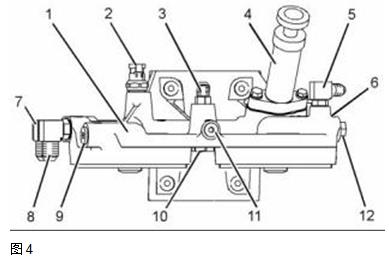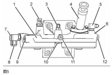 6. 从燃油滤清器底座总成(1)上拆下塞子(9)、(11)和(12)。从塞子上拆下O形密封圈。