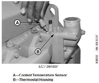2. Coat sensor O-ring with JDT405 High Temperature Grease and install sensor in thermostat housing. Tighten to specifications.