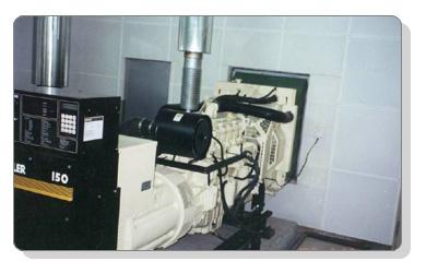 柴油发电机组基座放在橡胶减振垫及隔震地基上。橡胶减振垫针对发电机组的运行重量和振动频率选择,保证隔振效率达到95%以上。