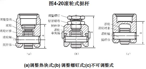 滚轮式挺杆有3种形式:调整垫块式、调整螺钉式、不可调整式,如图4-20所示。