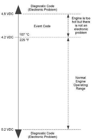典型模拟温度传感器的输出电压图8表示了一个典型模拟传感器的信号范围。如果传感器输出信号低于0.2 VDC或高于4.8 VDC,就会生成诊断代码。 动态诊断代码激活的诊断代码代表了电气控制系统的问题。尽可能快地纠正问题。当生成一个动态诊断代码时,“ 动态警告” 指示灯(在卡特ET“ 发动机控制警告状态” 上)被激活,以警告操作者。如果生成卡特cat代码的情况是暂时的,信息会从动态诊断代码清单中消失。诊断代码变为日志。