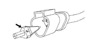 图33接头上泄漏的密封(范例)A. 检查所有电线线束。确认电线线束的路径允许电线以垂直的角度进入每个接头表面。否则,电线会使密封孔变形。参考图33。这会产生潮湿进入的路径。确认电线密封正确地密封。