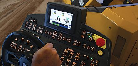 工厂集成的 Cat 坡度控制允许工作人员从牵引机或熨平板控制台中的任何一个进行操作。 分屏模式使熨平板操作员能够从熨平板的一侧或从每一侧进行操作。 这在培训新操作员以及工作人员有多个作业现场任务时尤其有帮助。