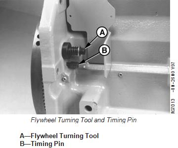3.用飞轮车刀旋转约翰迪尔JOHN DEERE6081发动机,直到正时销与飞轮上的正时孔接合。