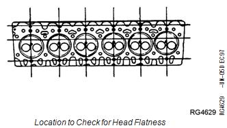 NOTE: If necessary to resurface cylinder head, a MAXIMUM of 0.762 mm (0.030 in.) can be ground from new part dimension. Remove ONLY what is necessary to restore flatness.