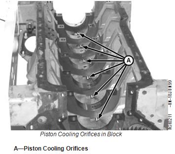 IMPORTANT: A piston cooling orifice failure could cause damage to pistons, piston pins, rod pin bushings, and liners. If a piston cooling orifice is left out, low or no oil pressure will result.