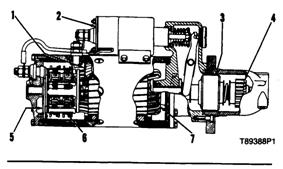 (1)磁场(2)螺线管(3)离合器(4)齿杆(5)转向器(6)电刷套件(7)电枢
