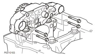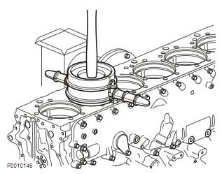 4 清洁活塞冷却喷嘴,检查并确认这些喷嘴未损坏。使用新螺栓安装喷嘴。检查并确认喷嘴直接对准活塞油冷却孔。润滑油泵,安装1 安装油泵、加固板、管道和吸入口滤网;参见润滑油泵。