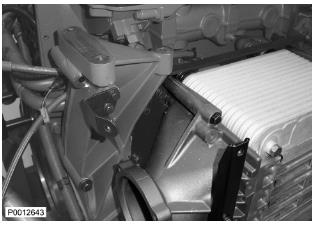 82 仅适用于 D13B-A/C/G/H/K/L,D13C2-A,D13C4-A(双涡轮增压器)安装空气过滤器固定器(1)。将橡胶螺柱软管(2)夹紧至涡轮增压器。安装 CCV 单元管路并固定夹子。