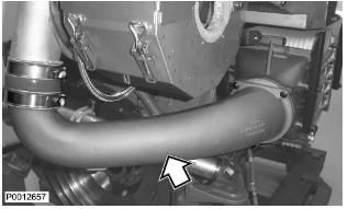 65 仅适用于 D13B-A/C/G/H/K/L,D13C2-A,D13C4-A(双涡轮增压器)向上提升增压空气冷却器并将软管滑到冷却软管上。使用所有螺栓固定增压空气冷却器。图示为带废气门的涡轮增压器(D13B-A/C/G/H/K/L,D13C2-A,D13C4-A,双涡轮增压器)。