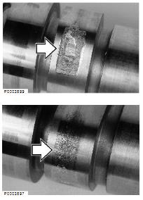 更换指南在正常情况下,沃尔沃发动机凸轮轴凸角表面会不平整。这不一定表示必须更换凸轮轴。这些标记对于沃尔沃发动机性能或发动机及其部件的使用寿命并没有任何负面影响。下面给出了可接受的磨损以及不可接受的磨损的示例。