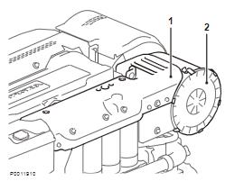 5 拆下盖(1)。拆下空气过滤器箱(2)和通往 CCV 单元的管道。