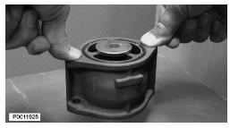 2 为检查沃尔沃柴油机冷却系统阀中的弹簧弹力,可将阀放在磅秤上进行负载试验。当开口为 5 mm (0.2")时,磅秤上将显示相应的重量。这些阀和前面的两个阀完全不同;它们装配有导向销,这样就不会安装在错误的位置或安装时朝向错误。还须检查阀盘是否完整并确保阀心轴不会卡住转向装置。