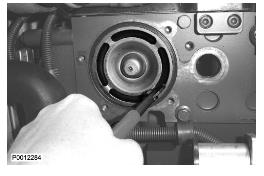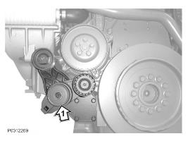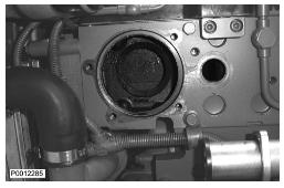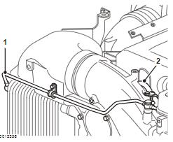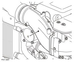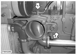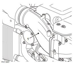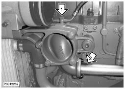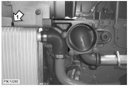 11 安装恒温器盖。将螺栓(1)安装到增压空气冷却器上。