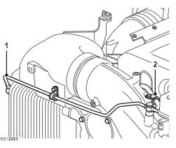 2 将volvo柴油发动机增压空气冷却器至膨胀箱之间的管路(1)。拆下增压空气管上的橡胶软管夹(2)。
