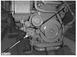 volvo柴油机传动皮带的更换安装方法沃尔沃正时皮带如何装拆图解 1 拆下皮带护罩。 2 使用铰链扳手松开皮带张紧器。 3 拆下皮带。 4 检查张紧器的功能、皮带轮的状态和惰轮轴承。 5 安装皮带并松开张紧器。检查并确认皮带处于惰轮皮带轮的中心位置。 6 检查并确认皮带在所有皮带轮上正确对准。 7 安装皮带护罩。