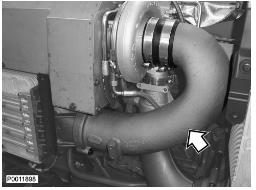 3 拆下volvo涡轮增压器和增压空气冷却器之间的增压空气管。