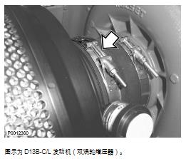 volvo柴油发动机PCU,更换D13B-A MP, D13B-B MP, D13B-G MP, D13B-H MP,D13B-J MP, D13B-K MP, D13C1-A MP, D13C2-A MP拆下保护盖(如果安装)。